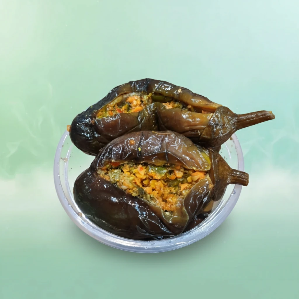 ترشی بادمجان شکمپر خانگی، پر از سیر و سبزی معطر با طعمی تند و ملس